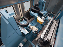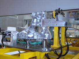 MAKA詳細(xì)分析了美鋁和法拉利公司的需求,開發(fā)了CM27t數(shù)控加工中心。該設(shè)備具有高精度旋轉(zhuǎn)夾具,可360度旋轉(zhuǎn)且翻轉(zhuǎn)后無需再定位;雙工作臺實現(xiàn)工件裝載與加工站交替工作,8m*3m尺寸的高速升降門與高動態(tài)驅(qū)動裝置配合使用,保證快速切換工作臺時的安全性;帶有51個刀位的鏈?zhǔn)降稁煸诩庸^(qū)域外,可通過數(shù)控到達主軸,確保最短的換刀時間。